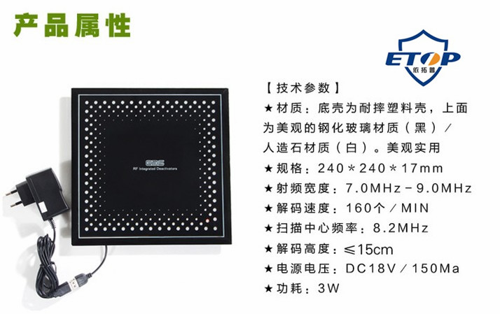 ETOP 超市防盗消磁器 射频软标签解码器